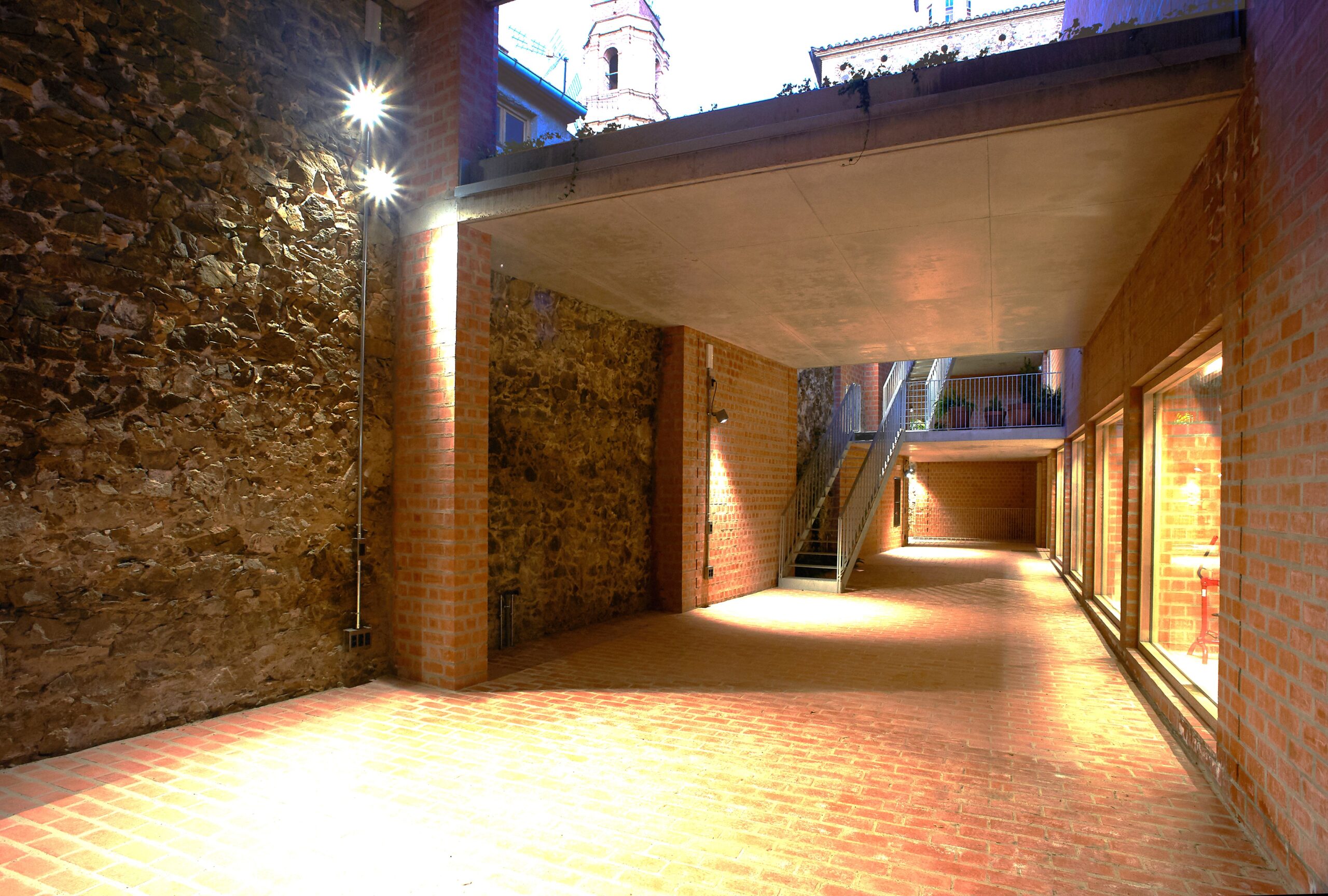 Built with natural, simple and durable materials, the building integrates perfectly into the historic center of Gratallops, inviting pedestrians to discover the winery through an interior passage, conceived as a public space and welcome area.